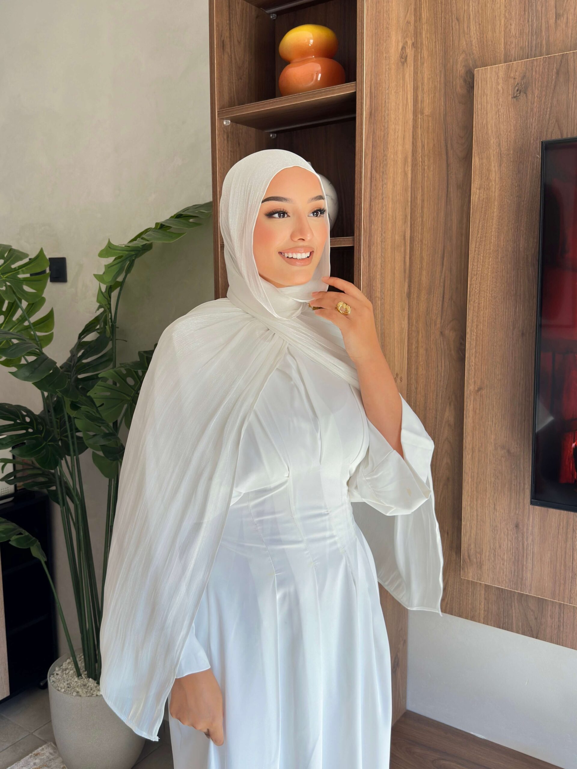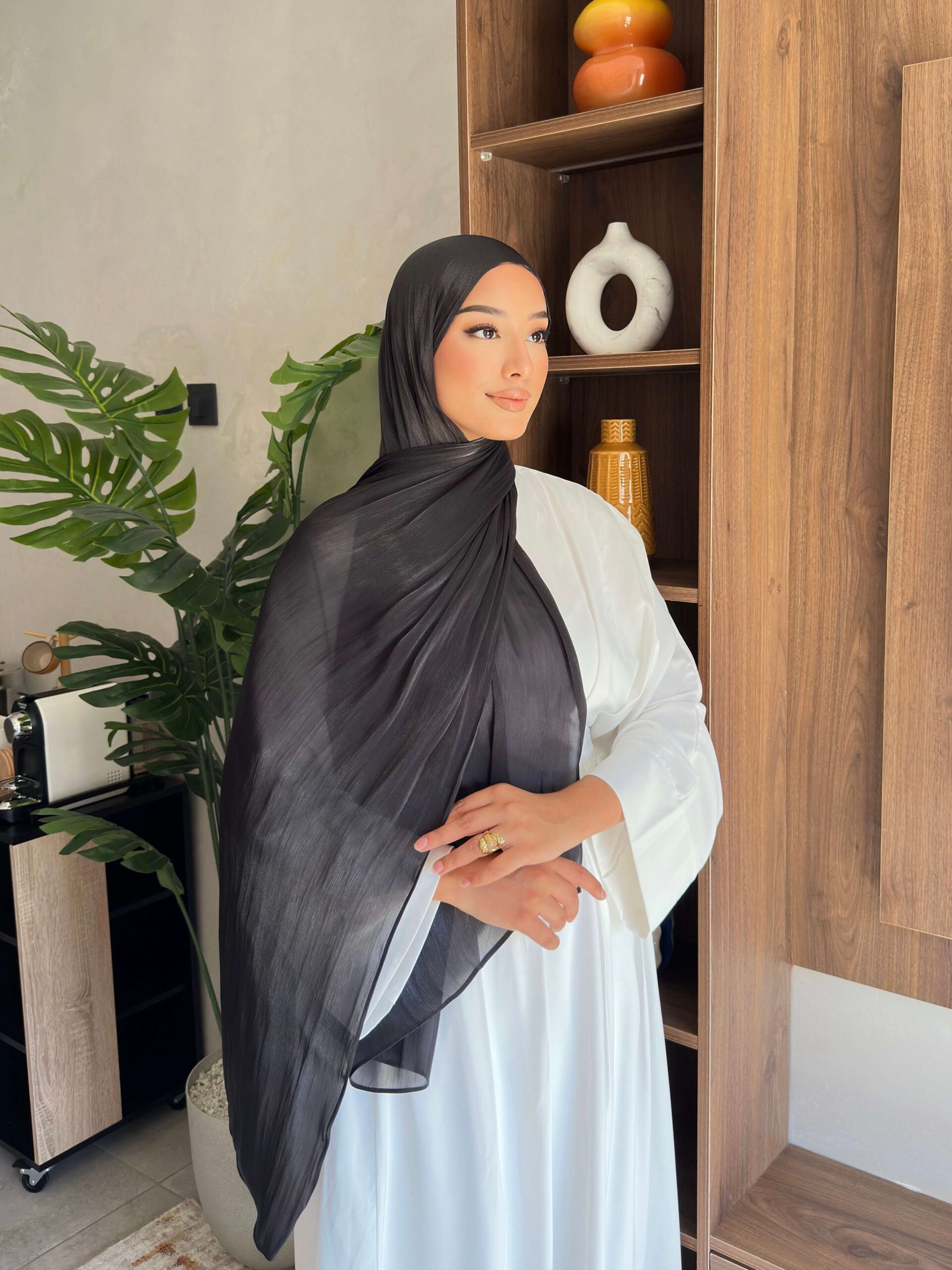 ORGANZA HIJAB   se distingue par sa texture douce et transparente, ajoutant élégance et délicatesse à chaque tenue. Grâce à son tissu léger mais résistant, ce châle offre une sophistication raffinée — parfait pour les occasions formelles ou pour apporter une touche féminine subtile à votre look quotidien.
